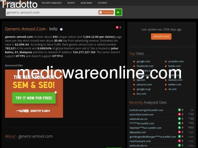 Generic-amoxil.com - Info Sito - generic-amoxil.com riceve circa 632 visitatori unici al giorno, e si è classificato 783,521 nel mondo. Trovare ulteriori dati sull'generico amoxil.