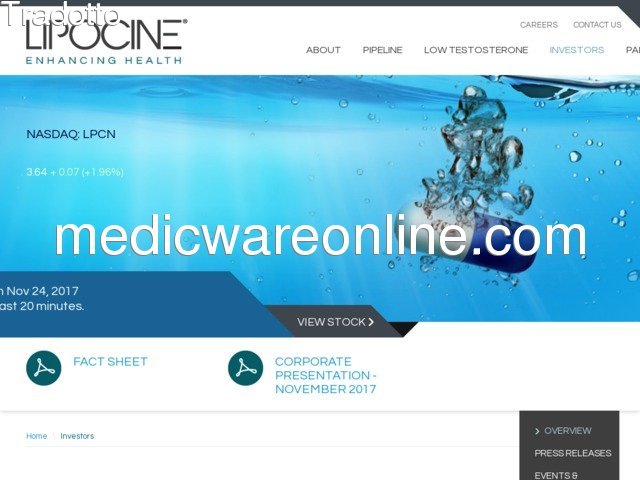Panoramica - Lipocine Inc. - Investor Relations " del sito contiene informazioni su Lipocine Inc. business per gli azionisti, i potenziali investitori e gli analisti finanziari.