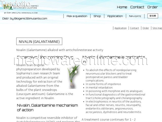 https://www.nivalin.com/about-nivalin.php Su Nivalin Galanthamine hydrobromide - Nivalin è applicabile nella pratica medica, ovunque c'è bisogno di stimolazione e potenziamento sinaptico acetilcolina neurotrasmissione mediata.