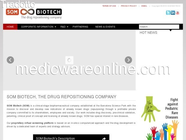 SOM BIOTECH, La droga, il riposizionamento azienda - SOM Innovazione Biotech (SOM) è di recente istituzione, azienda start-up a livello Scientifico Parc di Barcellona, con la missione di scoprire e sviluppare nuove indicazioni di farmaci già conosciuti (riposizionamento) attraverso un proficuo società privata impegnata per i suoi azionisti, i dipendenti e la società.